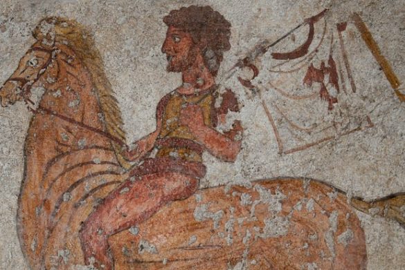 «Из-за состояния фрески нельзя понять, сопровождался ли воин другими фигурами. Понятно, что он скачет с трофеем, белой туникой, что указывает на обретение им статуса героя, вернувшегося с войны», — пояснили в пресс-службе Пушкинского музея.